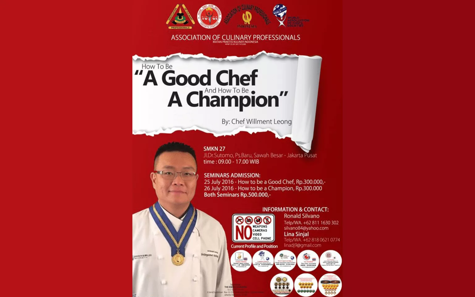Association of Culinary Professionals Indonesia with support of Chef  Willment Leong (Chairman Worldchefs Without Borders) held 2 days Educational Seminar in Jakarta.
