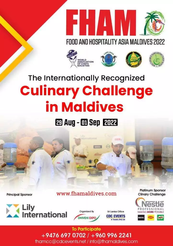The Food and Hospitality Asia Maldives Exhibition will set the stage once again for the national culinary competition of the Chef’s Guild of Maldives: FHAM International Culinary Challenge. This is without debate the only internationally recognized event to be held in the Maldives, endorsed by the World Association of Chef’s, World Platform of Islamic Countries Culinary Society, Chef’s Guild of Maldives and the Chef’s Guild of Lanka.