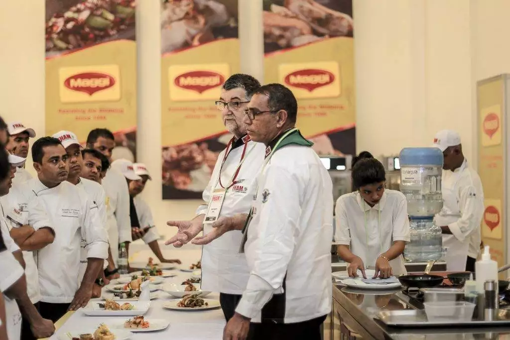 Chefs are awarded based on their live demonstrations; dressing the cake, food and vegetable carving, barista, seasoning and cooking meat, making biriyani etc, and there will also be static demonstrations such as the salt and sugar based pastries, the chocolate based bakes and the breads as well as the plated appetiser and other dishes. The static demonstrations will be judged based on the showpiece; the presentation, texture, taste, creativity composition and serving arrangements will be fair criteria’s to judge the winners. Live demonstrations will be judged based on: practical approach, professionalism, skills and techniques in preparation. Additional credits to new skills and techniques shown, and good hygiene practices and less wastage of food will be marked.