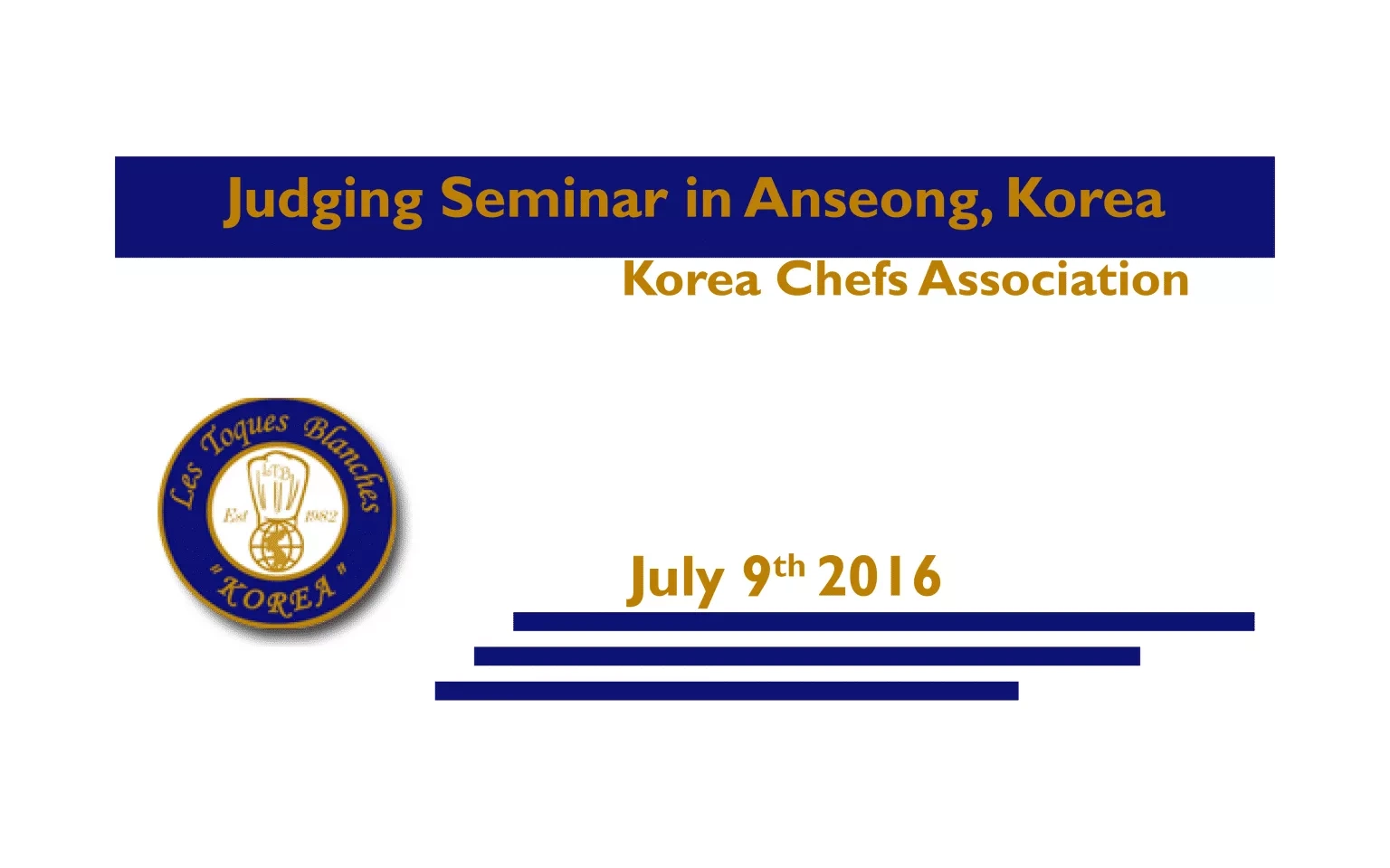 The Korea Chefs Association is organising a judging seminar on the 9th of July 2016 in Anseong, South Korea. In order to participate please contact Kim Jeong Hak by email .