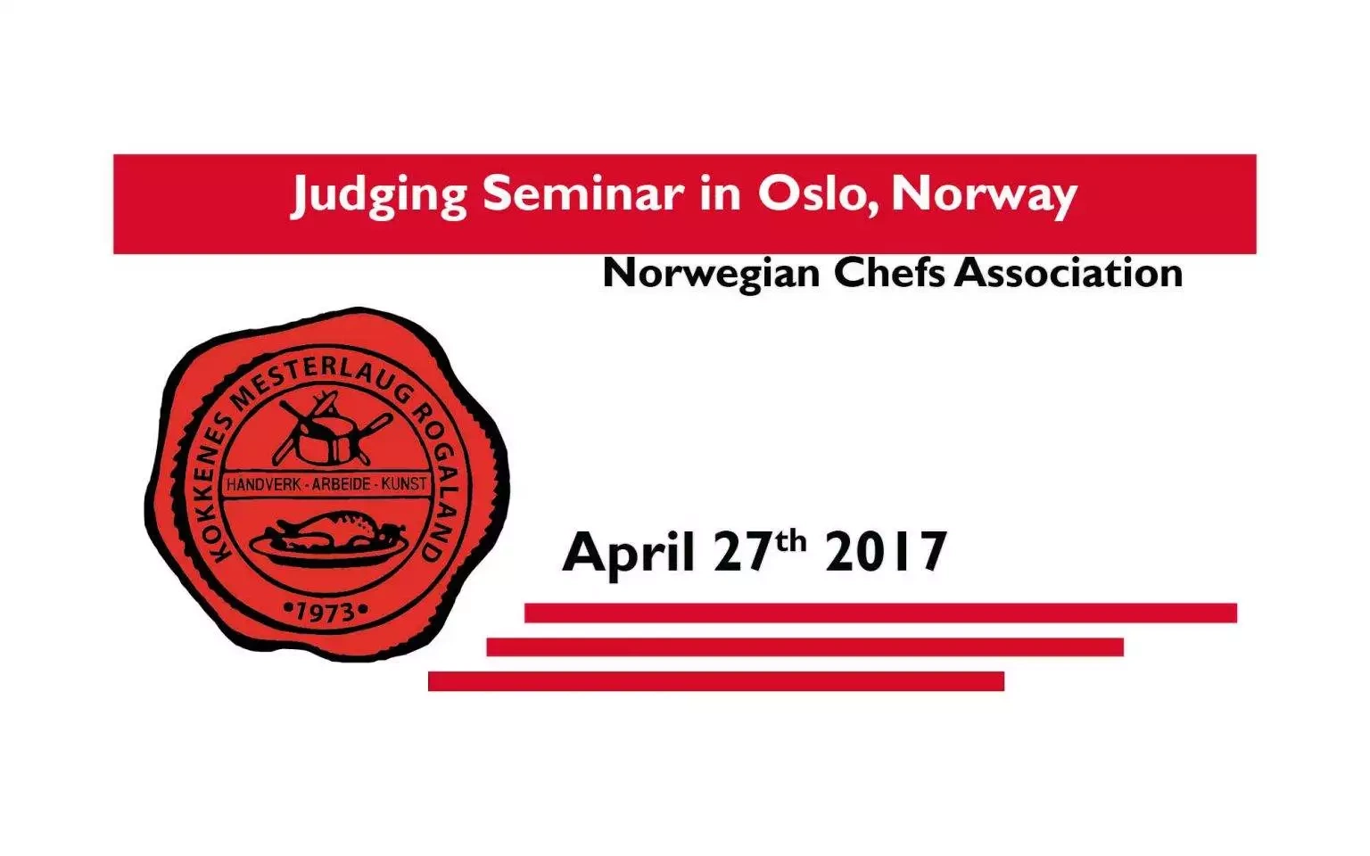 The Norwegian Chefs Association is organising a judging seminar in Oslo on the 27th of April 2017.