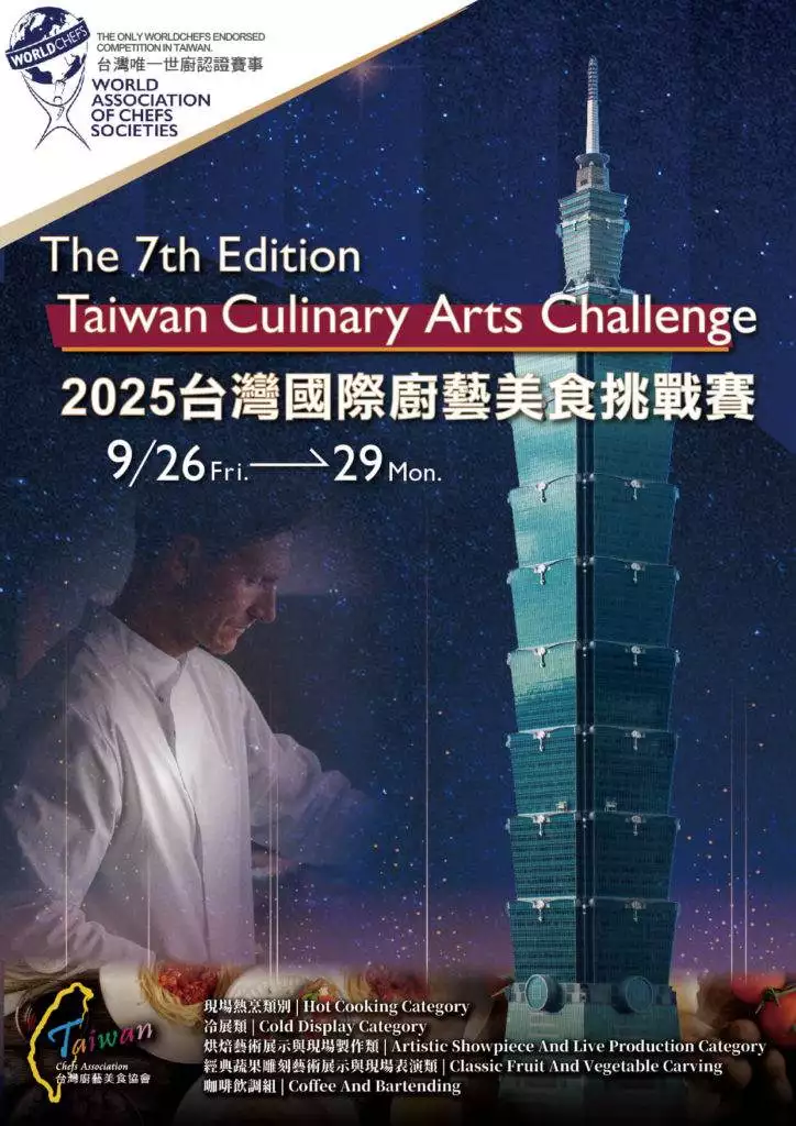 The 2025 TCAC Taiwan Culinary Arts Challenge marks its 7th edition and will once again be held at the prestigious Taipei World Trade Center. This highly anticipated event brings together culinary professionals and aspiring chefs from Taiwan and across the globe to compete in a wide range of categories, including Hot Cooking, Cold Display, Art Showpiece, Live Show, Coffee, and Bartending. New to this year’s competition is the Team Challenge, offering a dynamic and collaborative culinary experience.