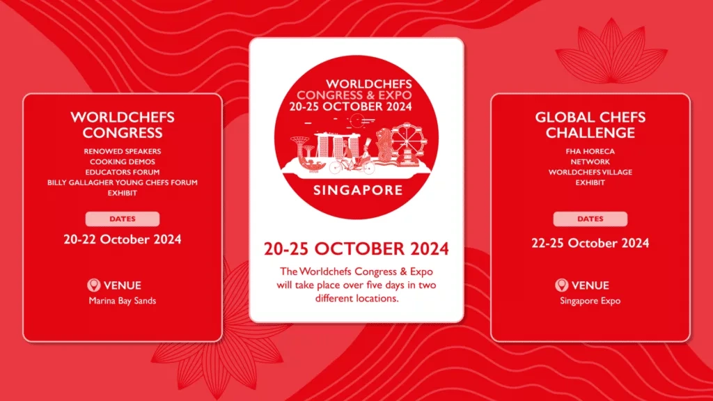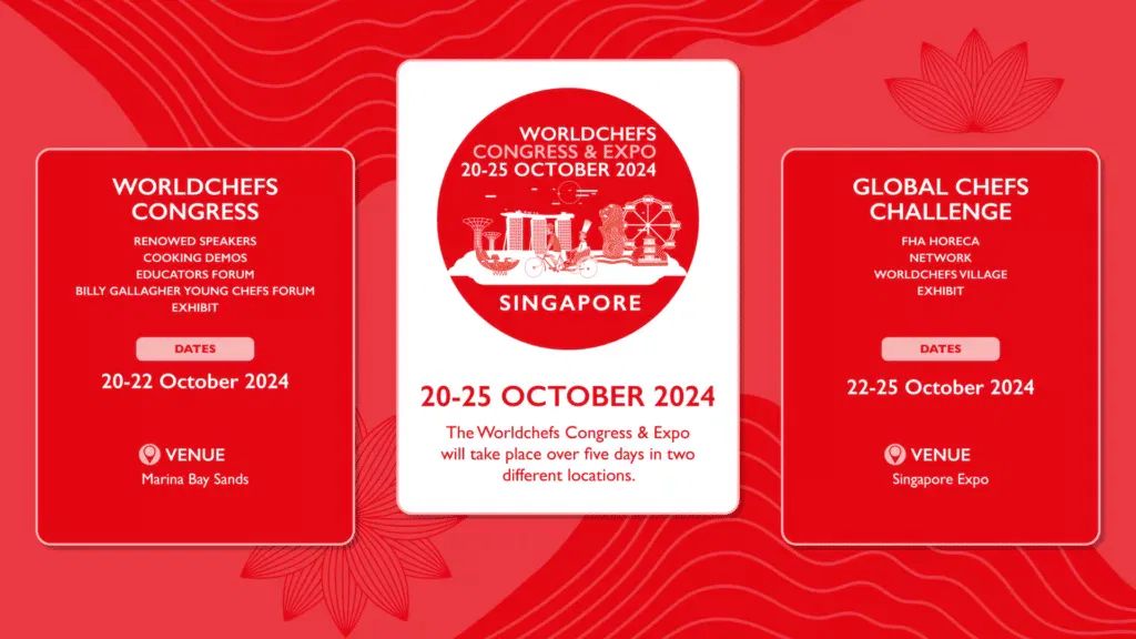 Network and expand your professional bonds with the most influential culinary body worldwide. Join us for Worldchefs Congress & Expo 2024 from October 20-25, 2024 in Singapore.