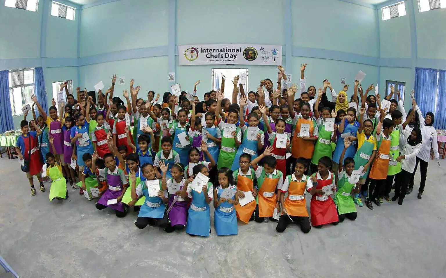 2. On the 29th of October we celebrated in ADDU Atoll which is the most southern Atoll of Maldives. This event saw 200 school children of 10, 11, 12 years of age participating in International Chefs Day “Art on a Plate”. They were instructed by 25 chefs from the Chefs Guild of Maldives who flew in for the event.