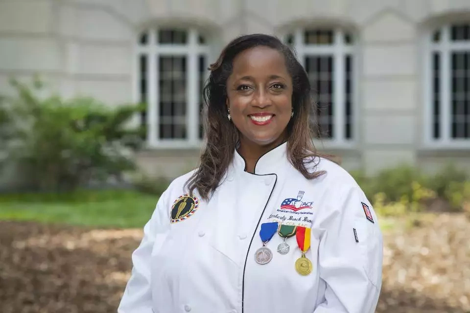 On August 5th at its 90th annual meeting, the largest professional chefs’ organization in North America, the American Culinary Federation (ACF), inducted its first woman president, its first Black president, and its first president hailing from the pastry side of the kitchen: Kimberly Brock Brown.