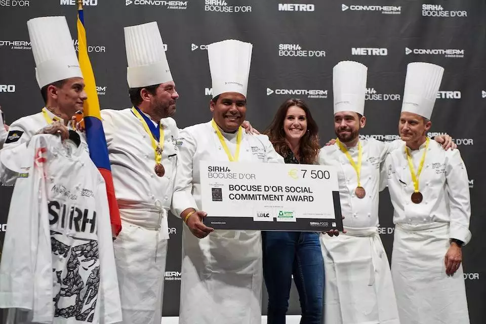 With 2021 a year like no other, Bocuse d’Or launched a new award in partnership with GL events, the Social Commitment Award. It recognizes a Bocuse d’Or team for its societal involvement in areas related to food. This year seven countries applied to receive the Social Commitment Award. The winner was Team Colombia for their project COCA, NO COCAINA.