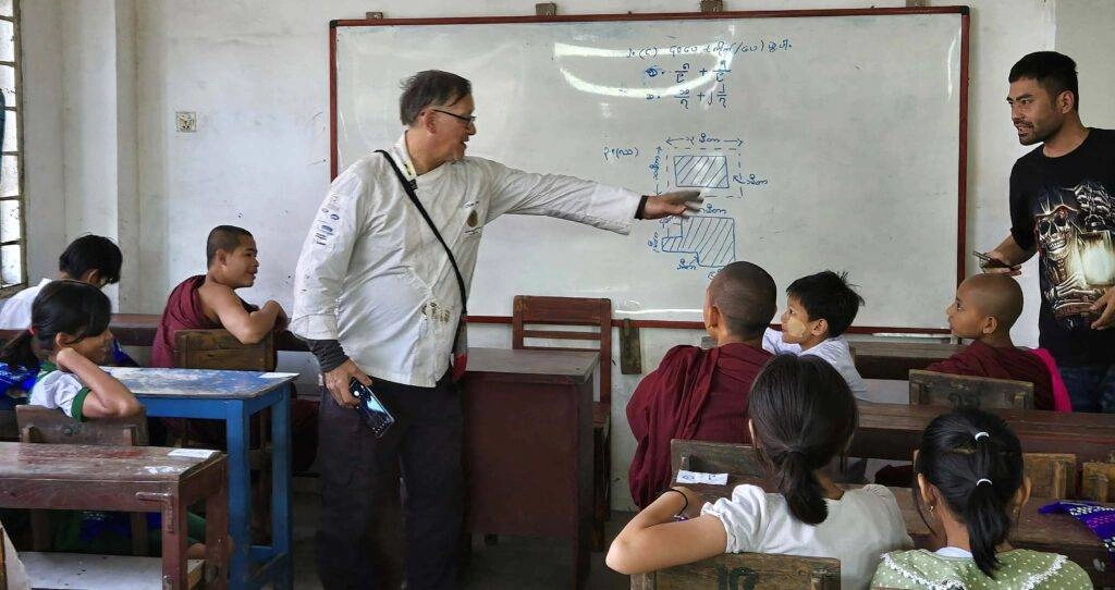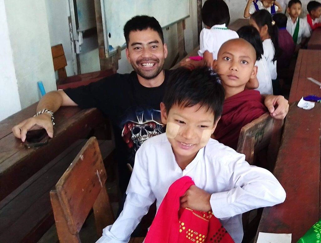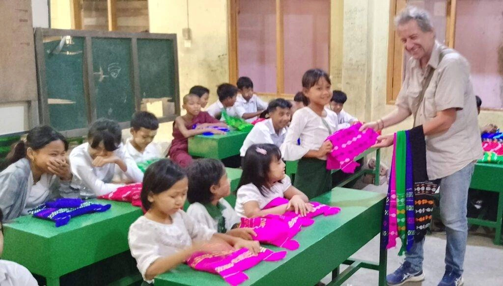 Thanks to the generous donation of Chef Myo Sandar Htun and her family, students received traditional school bags filled with essential stationery items, including exercise books, rulers, erasers, sharpeners, pencils, and ballpoint pens.