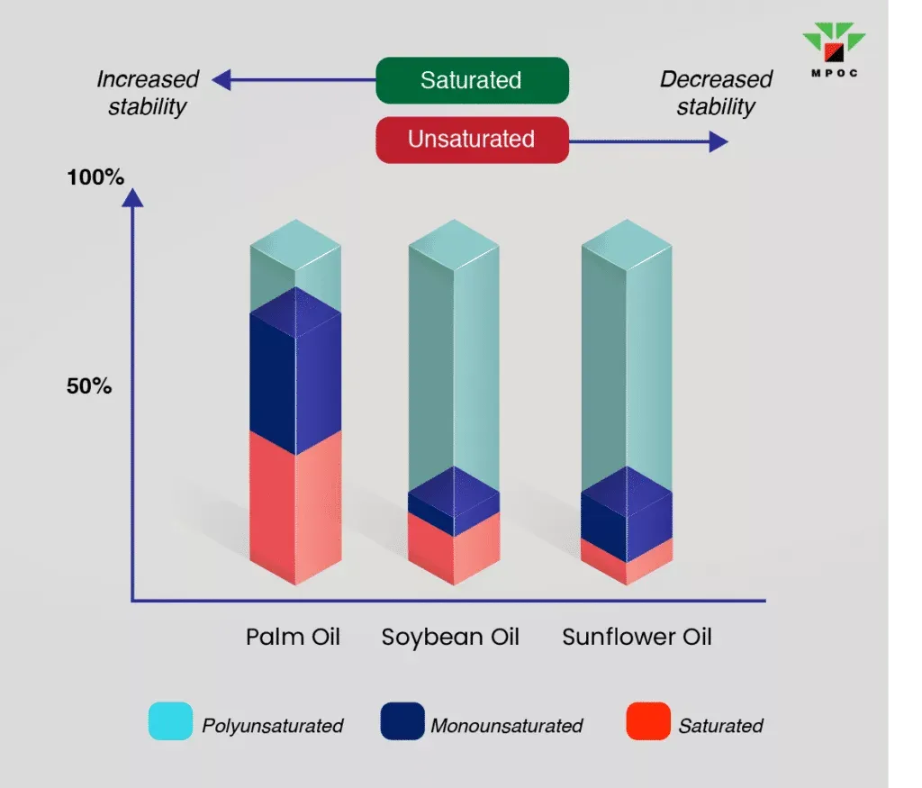 “Unlike polyunsaturated oils, palm oil contains less linolenic acid which is highly susceptible to oxidation during frying.”