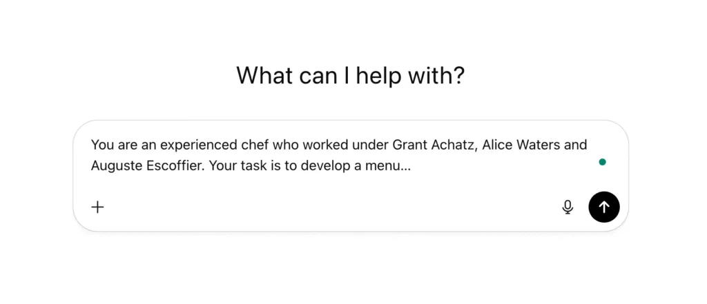 Achatz has been described as The Alchemist of Modern American Cuisine, a mad scientist chef. A visionary in molecular gastronomy who hasn’t been afraid to challenge convention, his kitchen at Alinea is a culinary laboratory, filled with custom-created gadgets and scientific equipment to make a different kind of cooking and dining experience. Using ChatGPT is another shiny new tool in his kitchen. In this way, it lines up with his story. It’s part of his gimmick. And he’s using AI just like most articles on the internet will tell you: give it a persona.